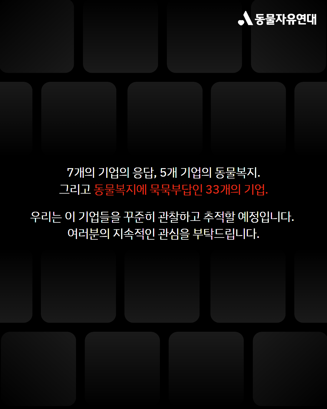 5개 기업의 동물복지. 그리고 동물복지정책에 묵묵부답인 기업 33개.