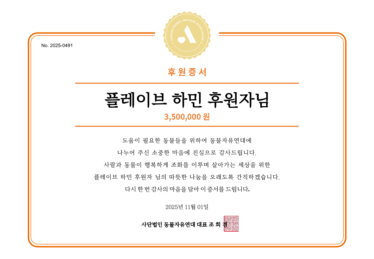 하민 님의 생일 (11월 01일)을 기념하여 후원해주셨습니다.