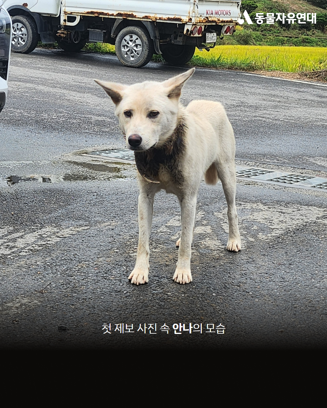기온이 점차 떨어지던 2025년 11월, 동물자유연대 활동가들은 오랜 시간 목줄이 목을 파고드는 상태로 돌아다니고 있다는 개를 구조하기 위해 전라남도 화순으로 향했습니다.