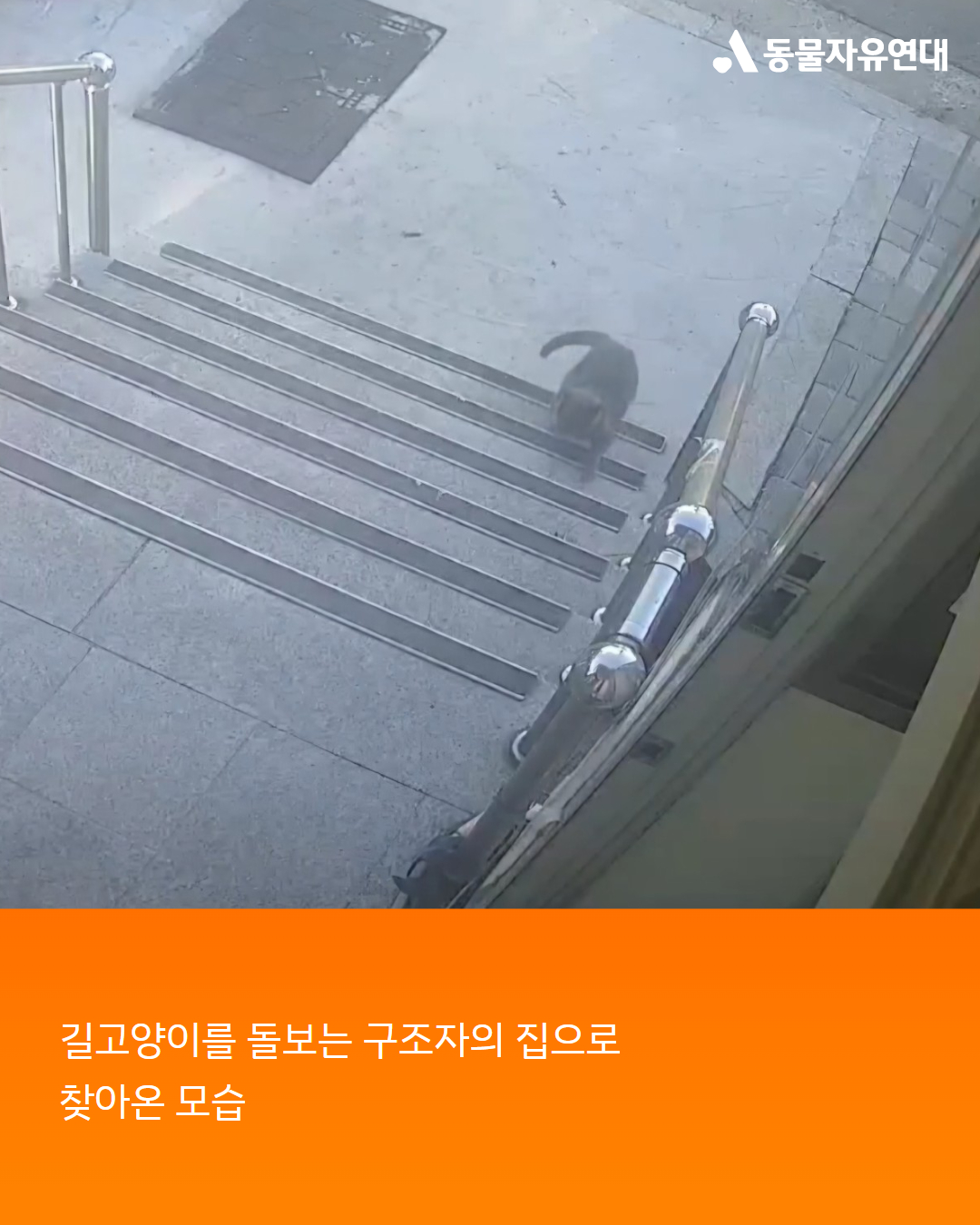 동네에 수소문해 보니, 이웃이 고양이가 낮에 차에 치인 것 같다고 했습니다. 그 말에 너무 놀라 온가족이 더 서둘러 찾았으나 결국 찾지 못했습니다. 어디선가 죽었나 보다 하고 포기하려는 순간 고양이가 집 앞에 나타났습니다.