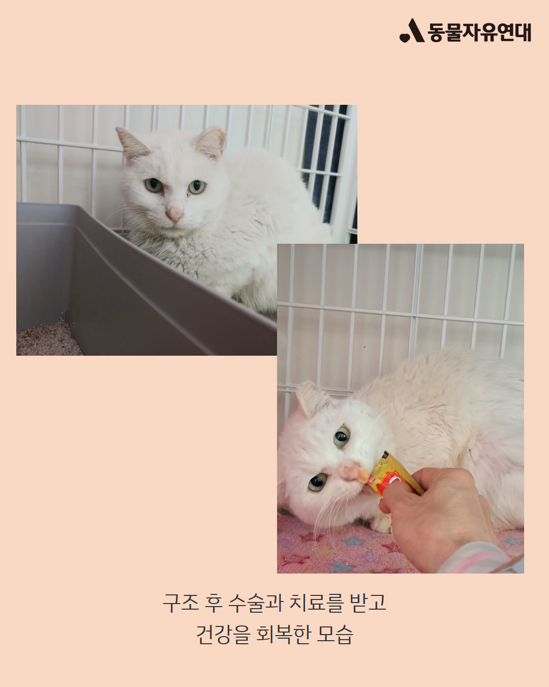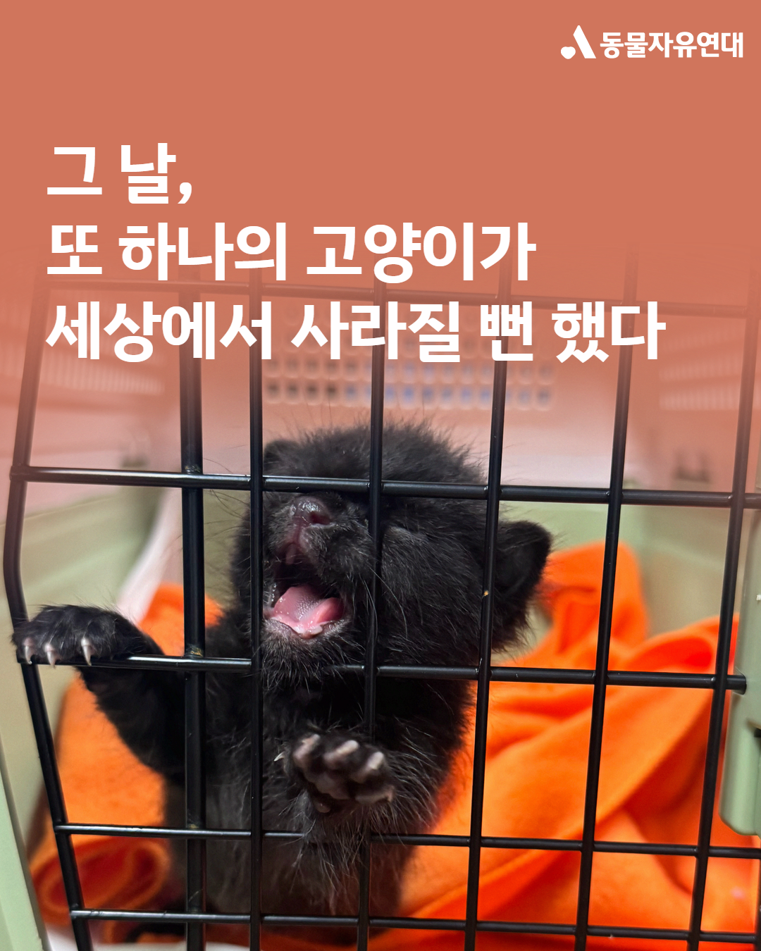 많은 시민들이 매일 구조를 요청합니다. 그러나 입양으로 비워지는 자리보다 동물보다 도움이 필요한 동물이 훨씬 많은 상황에서 단체가 가진 능력은 생각보다 대단치 않을 때가 많습니다. 만약 그 날 제보자가 건물 훼손을 거부했다면, 또 수유를 맡아줄 봉사자를 끝내 찾을 수 없었다면, 그 새끼고양이는 지금 세상에서 사라졌을지도 모릅니다.