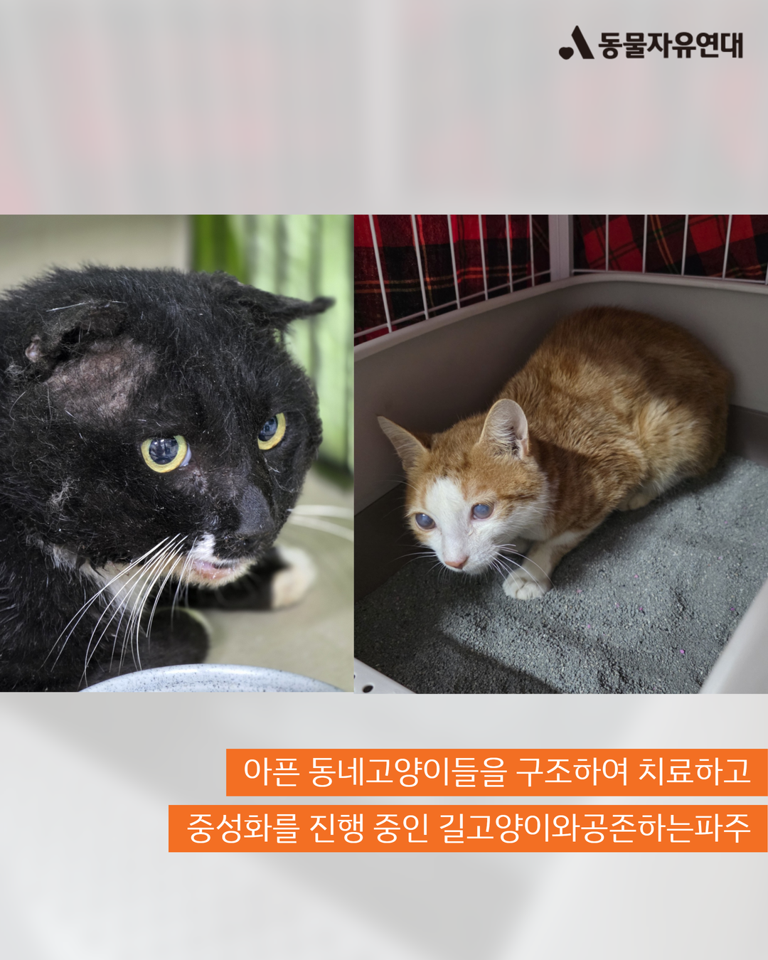 아픈 동네고양이들을 구조해 치료하고, 치료가 끝난 고양이들의 중성화를 진행하며