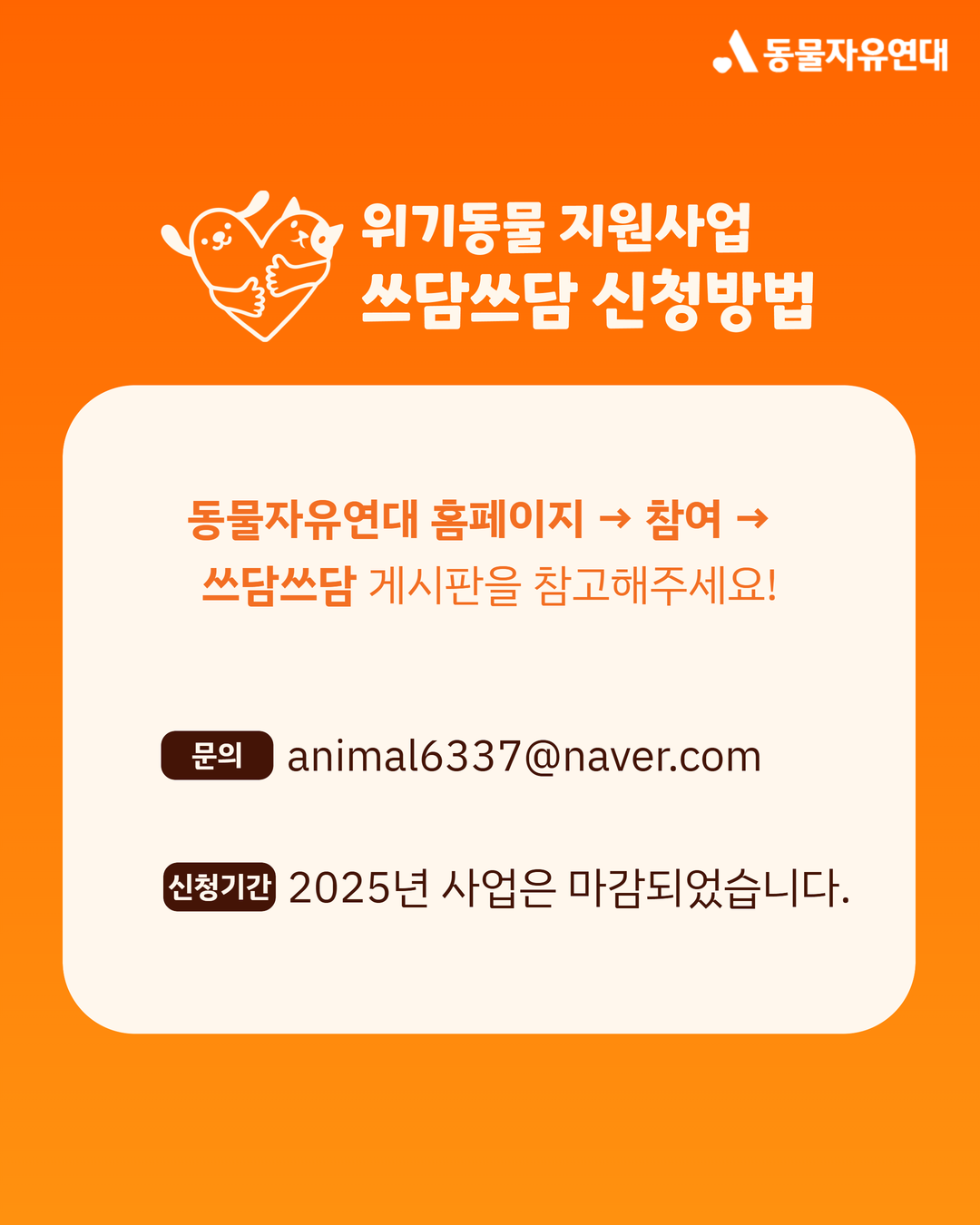 동물의 안전을 지키고 회복 지원