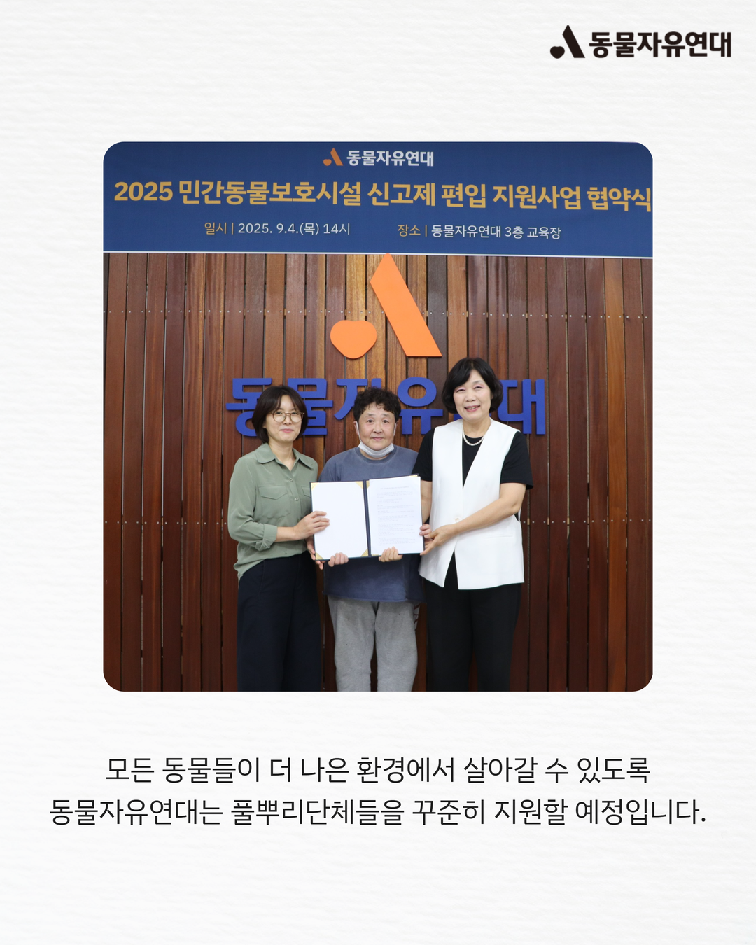 동물자유연대는 현장에서 묵묵히 동물들을 살려온 풀뿌리단체들을 위해