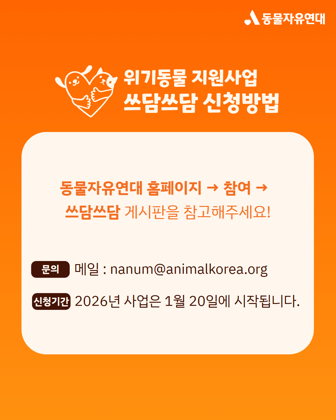 동물의 안전을 지키고 회복 지원