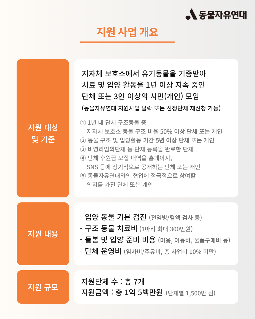 ※ 동물자유연대 이전 지원사업 탈락 단체 및 선정 단체도 재신청 가능