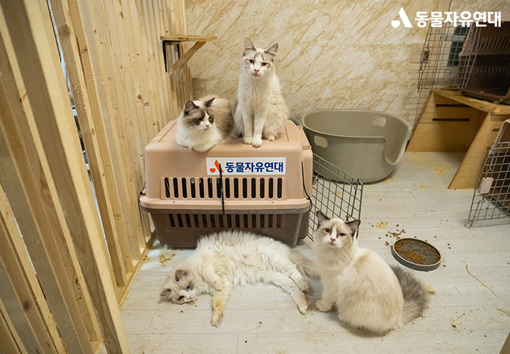 동물자유연대는 올해 3월, 울산의 한 고양이 불법 번식장에서 오물 속 돌봄 없이 방치되고 있는 고양이들을 구조했습니다.