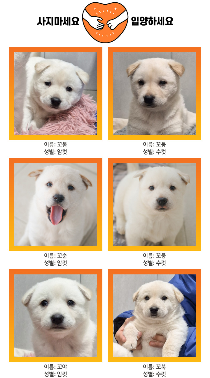 온센터에 입소한 후 이 작은 생명들에게는 이름이 생겼습니다. 🐾 꼬씨네 가족들입니다.