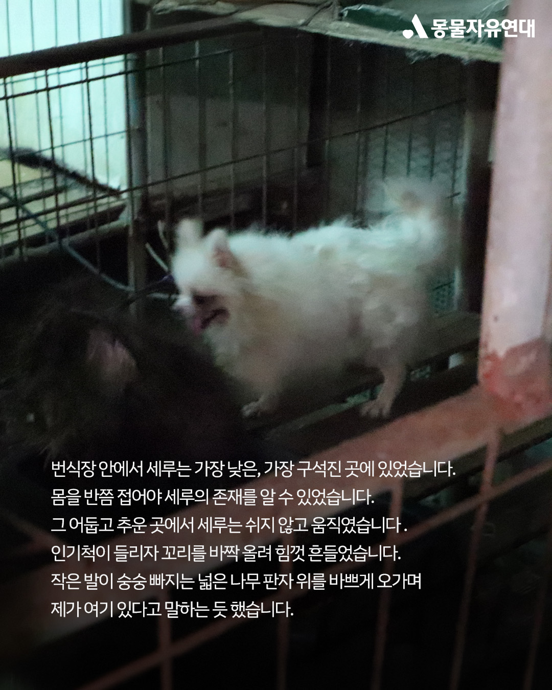 지난 9월 11일, 동물자유연대는 충남 세종시의 한 동물 미용학원에서 실습용으로 쓰이던 53마리의 개들을 구조했습니다.(구조사연 더보기) 그곳에서 동물들은 살아가는 생명이 아닌, 단지 가위질 연습을 위한 도구로 취급되고 있었습니다. 이들은 미용 실습 뿐 아니라 번식에도 이용되었습니다.(번식장과 미용학원에서의 이중학대)