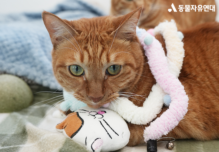호기심이 많아 장난감 놀이를 좋아하는 카프는 장난감을 들고 다가가면 함께 놀 준비를 합니다.