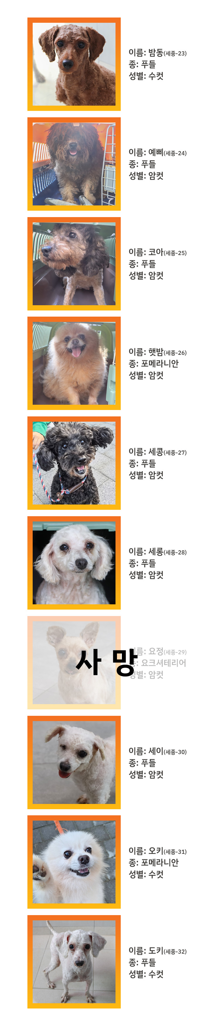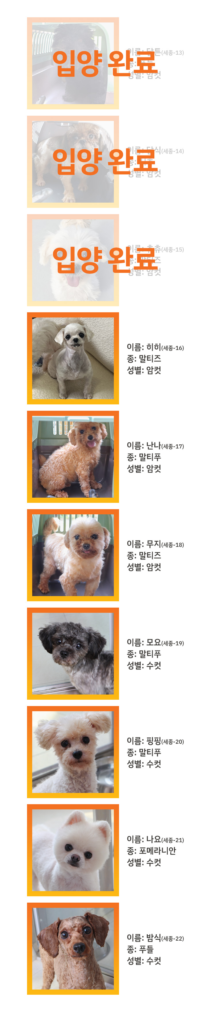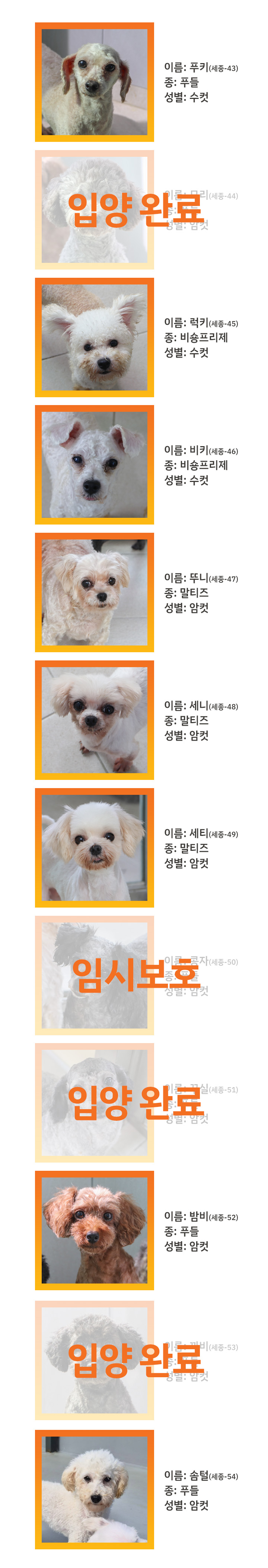 - 구조동물의 개별 사진과 상세 정보는 추후 순차적으로 업데이트 될 예정입니다.