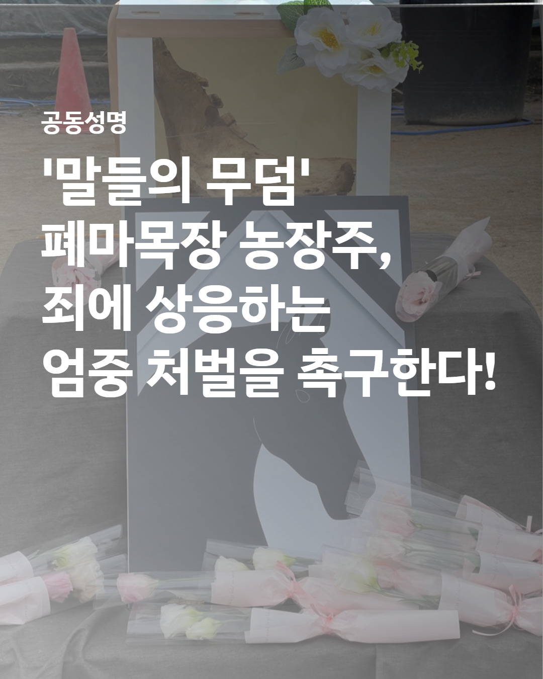 우리는 동물학대 행위에 대한 국민 법감정을 충분히 반영하지 못한 이번 판결에 깊은 유감을 표하며, 검찰이 즉각 항소하여 피고인의 잘못에 상응하는 엄중한 처벌이 내려질 것을 강력히 촉구한다. 은퇴마 학대 행위를 단죄하고 말 복지 증진을 위한 제도적 노력을 다함으로써 다시는 ‘폐마목장’과 같은 참혹한 비극이 반복되지 않도록 해야 한다.