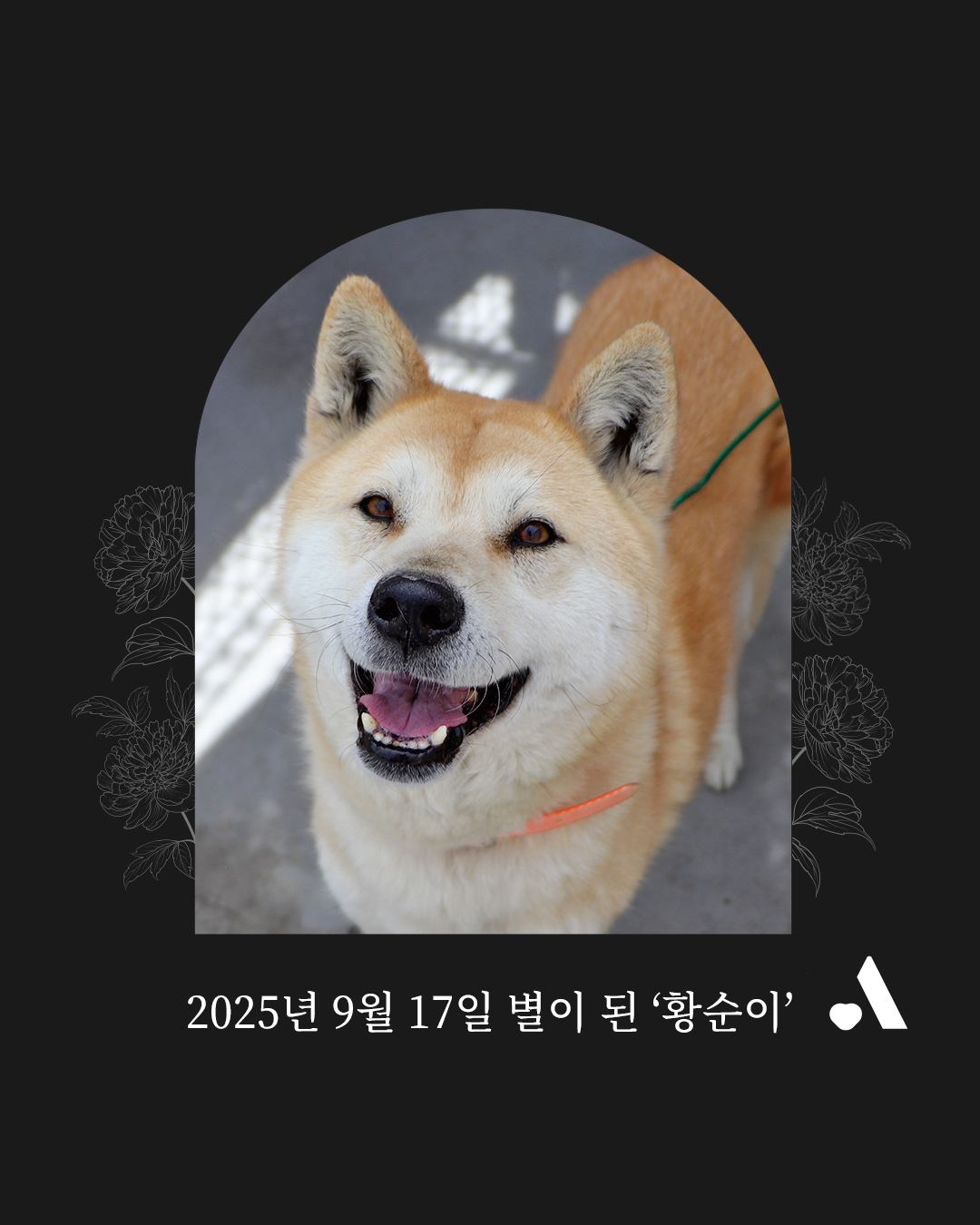 황순아, 너는 그동안 멋지게 잘 살아냈어. 정말 잘했고, 너무 대견해. 이제 가는 길은 오직 행복하기만 하기를 바랄게. 아픔 없는 곳에서 편안히 쉬기를 바라. 우리와 함께했던 날들을 잊지 말아 주고, 언젠가 다시 만나는 날이 오면 꼬리를 흔들며 반겨 주기를 기다릴게. 그날이 오면, 우리 다시 같이 산책하자.
