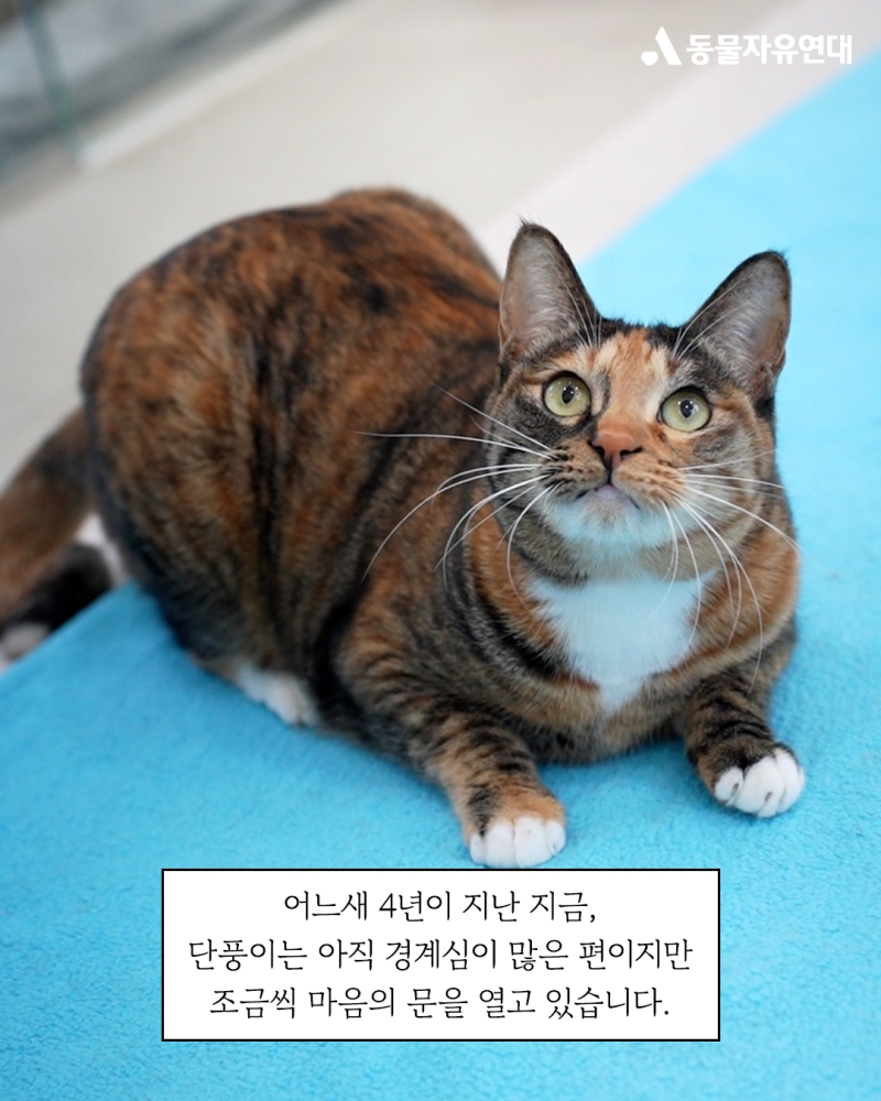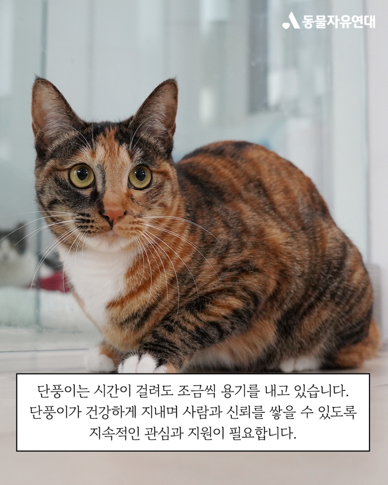 단풍이는 시간이 걸려도 조금씩 용기를 내고 있습니다. 단풍이가 건강하게 지내며 사람과 신뢰를 쌓을 수 있도록 지속적인 관심과 지원이 필요합니다.