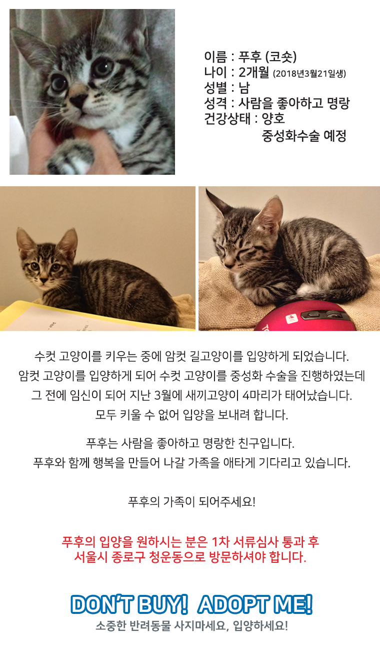 [D18-41관외] 사람을 좋아하는 아기 고양이 푸후