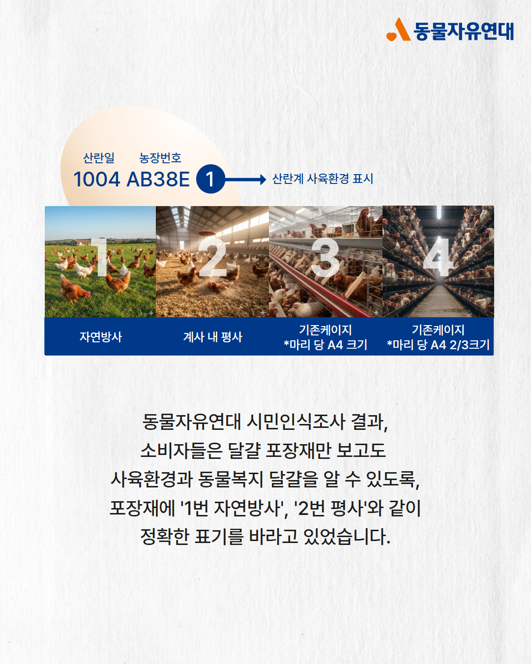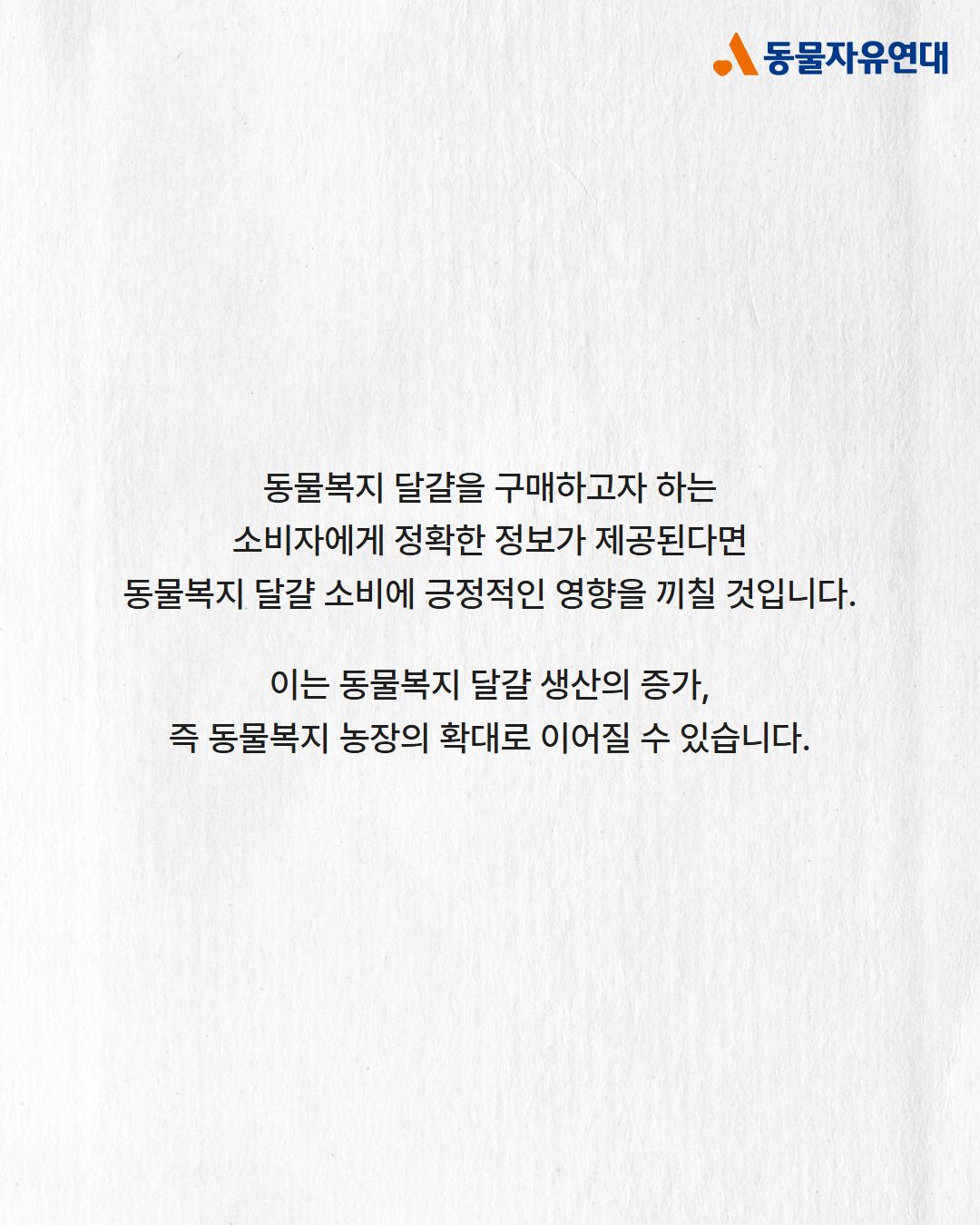 동물복지 뿐만 아니라 우리의 건강까지 포장재만 보고도 확인할 수 있도록