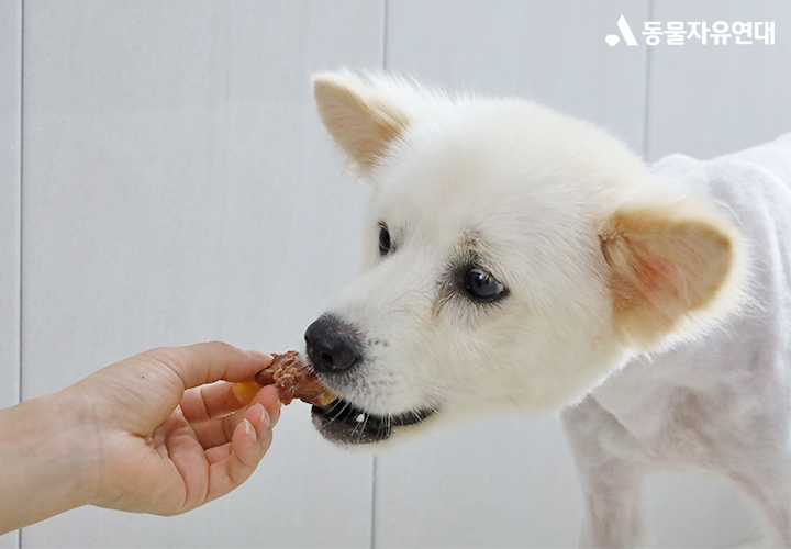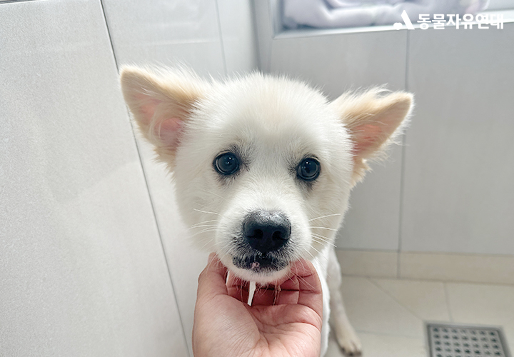 이제 베베는 조금 달라졌습니다. 견사 문 앞에서 익숙한 활동가의 발자국이 들리면 꼬리를 흔들고, 반가움을 표현합니다. 간식을 내밀면 망설이다가도 살금살금 다가와 받아먹습니다. 그 조심스러운 걸음 속엔, ‘사람을 믿어도 된다’는 새로운 배움이 담겨 있습니다.