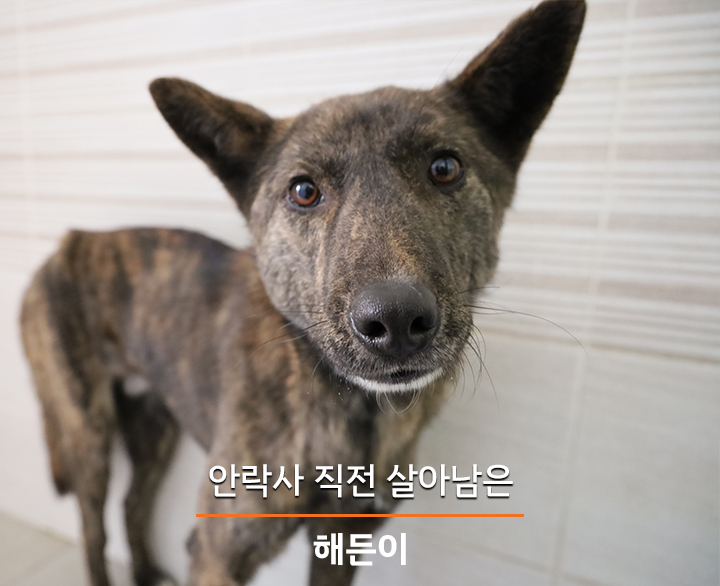 해든이는 시보호소에서 추석 연휴가 지나면 안락사가 시행될 예정이었습니다. 좁은 케이지 안에서, 자신에게 남아 있는 시간이 얼마나 짧은지도 모른 채 겁에 질려 웅크려 있던 해든이. 왜 이곳에 와 있는지도 모른 채 기다려야 했던 시간은 그 자체로 두려움이었을 겁니다. 다행히도, 안락사 직전 시보호소를 나와 해든이는 살아남을 수 있었습니다.