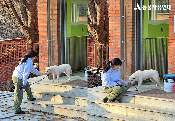 순댕이의 변화는 아주 미세하지만 분명합니다. 손이 다가오면 긴장하며 짖기만 했지만, 이제는 잠시 눈치를 보며 손길을 허락합니다. 쓰다듬는 손길에 몸을 맡기지는 못하지만, 그 자리에 그대로 남아 있는 것만으로도 큰 용기입니다. 두려움이 완전히 사라지지 않았음에도, 순댕이는 언젠가 온전히 믿음을 내어주는 날들의 가능성을 보여주고 있습니다.