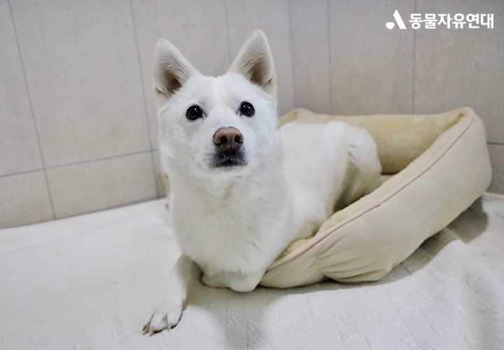 구조 이후 강비는 조금씩 평범한 일상을 알아가기 시작했습니다. 정해진 시간에 밥을 먹고, 깨끗한 물을 마시고, 잠을 잘 수 있는 공간이 있다는 사실. 처음에는 모든 것이 낯설고 조심스러웠지만, 강비는 서서히 사람의 손길과 돌봄에 적응해 갔습니다. 이후 해외입양을 준비하며 임시보호처에서 가족을 기다리기도 했습니다. 하지만, 낯선 환경과 변화는 강비에게 쉽지 않았고, 끝내 새로운 가족을 만나지 못한 채 여전히 가족을 기다리고 있습니다.