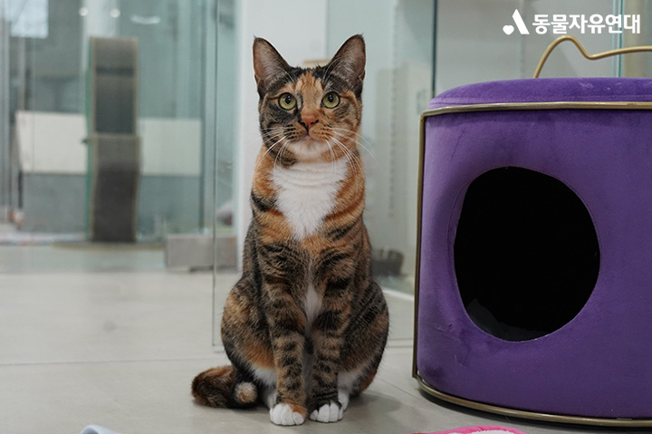 그래도 활동가들은 포기하지 않고 최선을 다해 단풍이를 돌봤습니다. 시간이 흘러 어느새 4년이 지난 지금, 단풍이는 여전히 경계심이 많은 편이지만 조금씩 마음의 문을 열어 온캣 생활에 적응하고 있습니다.