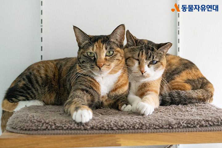 같은 보호소에서 지내는 '랑이'와는 절친이 됐습니다. 밤사이 닫아놓은 방문이 열리면 후다닥 달려가 잘 잤냐고 인사하기 바쁘답니다.