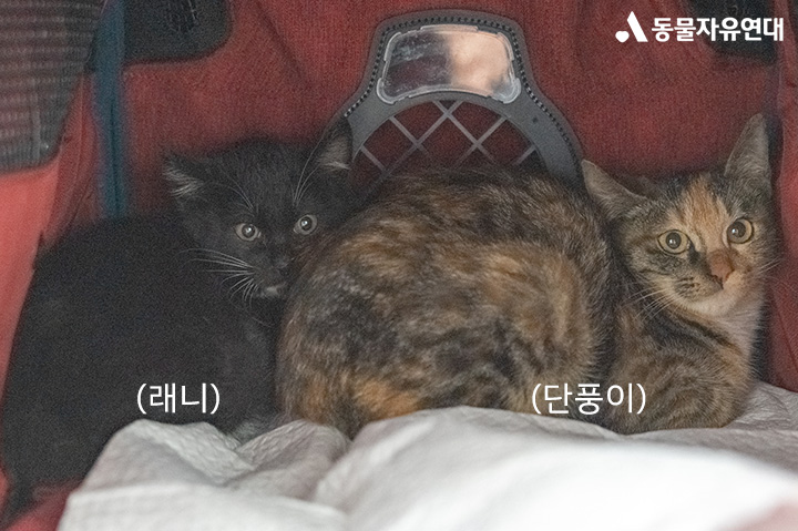 경계심이 많아 숨어있기만 했던 단풍이와 달리, 같이 구조된 '래니'는 활발하고 호기심 많은 고양이였습니다. 하지만 안타깝게도 래니는 구조된 지 얼마 지나지 않아 세상을 떠나고 말았습니다.