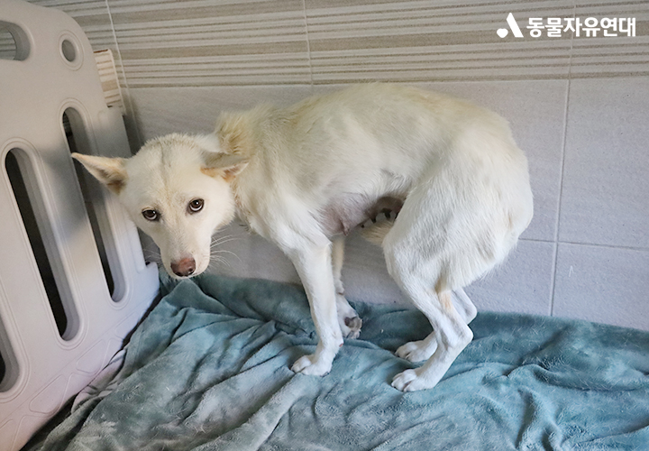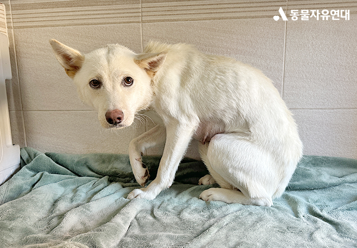 온센터로 옮겨진 뒤 꼬맘이와 자견들은 치료와 돌봄을 받기 시작했습니다. 꼬맘이의 상처로 가득했던 목은 서서히 회복되고 있지만, 몸에 남은 기억과 두려움은 쉽게 사라지지 않았습니다. 꼬맘이는 사람의 기척이 느껴지면 본능적으로 몸을 움츠립니다.