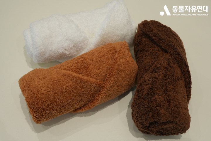 지난 25년 3월에 이어 겨울이 시작되는 12월에도 동물자유연대의 보호동물들의 청결한 생활을 위해 타월 380장을 보내주셨습니다.