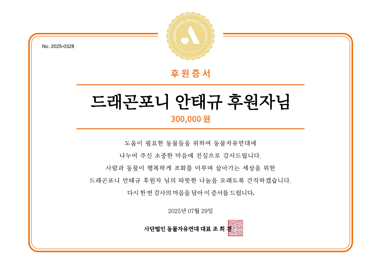 안태규 님의 생일 (07월 29일)을 기념하여 후원해주셨습니다.