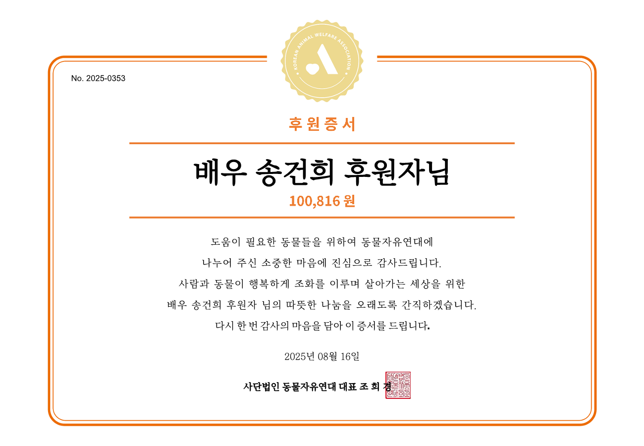 송건희 님의 생일(08월16일)을 기념하여 후원해주셨습니다.
