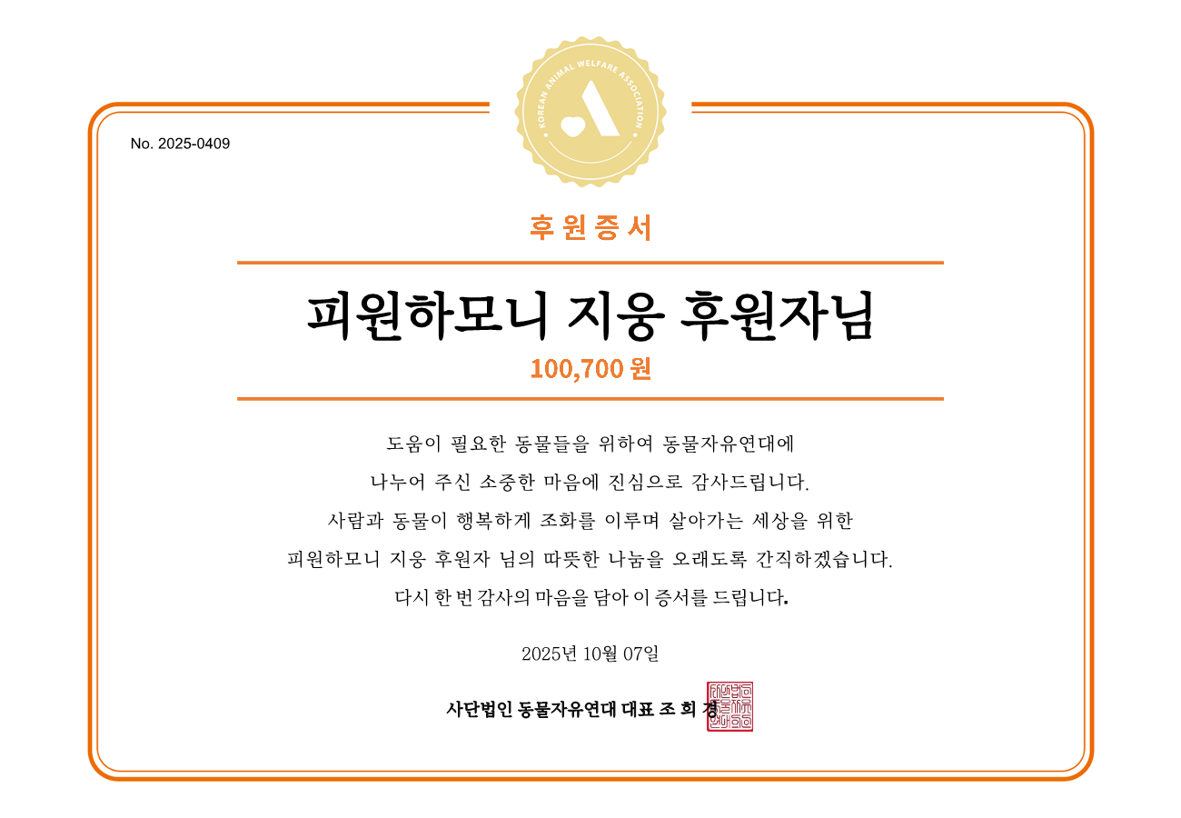 지웅 님의 생일(10월 07일)을 기념하여 후원해주셨습니다.