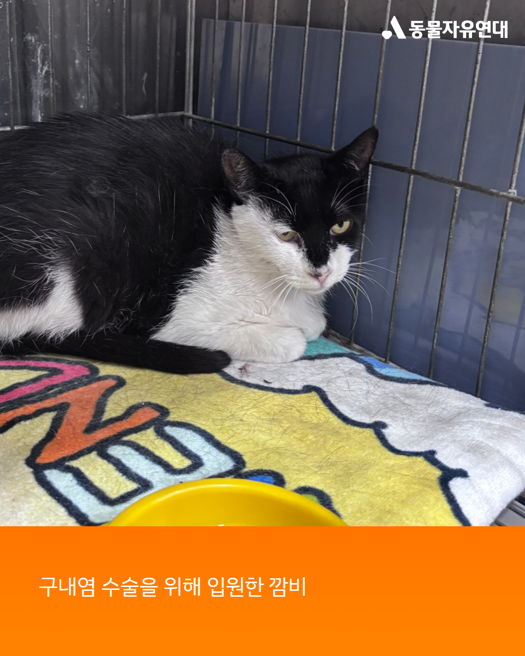 구조자는 병원비가 걱정되었고, 또 발치 수술 후 깜비가 길에서 잘 살아갈 수 있을지 걱정이 되었습니다, 여러 사람들에게 고민을 털어놓고 이야기하다가 동물자유연대의 쓰담쓰담에 대해서 알게 되었습니다. 그리고 임시 보호해 주시는 분이 깜비가 입양갈 때까지 임시 보호를 해주겠다고 했습니다. 구조자는 용기를 내 깜비를 병원으로 데려가 전발치 수술을 했습니다.