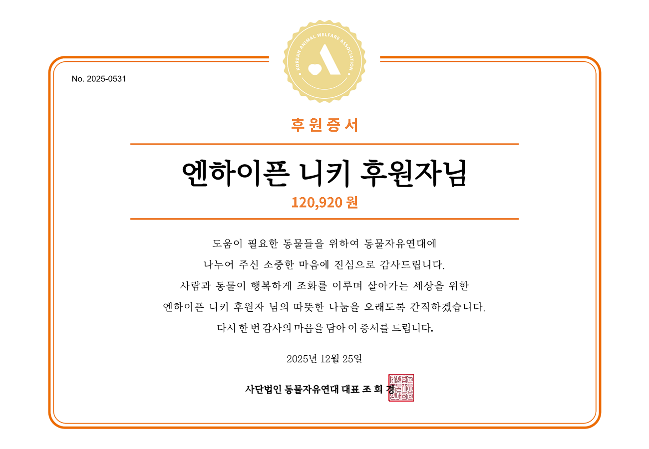 많은 동물들이 조금이라도 더 편안하고 안심하며 지낼 수 있기를 바랍니다🤍✨ "