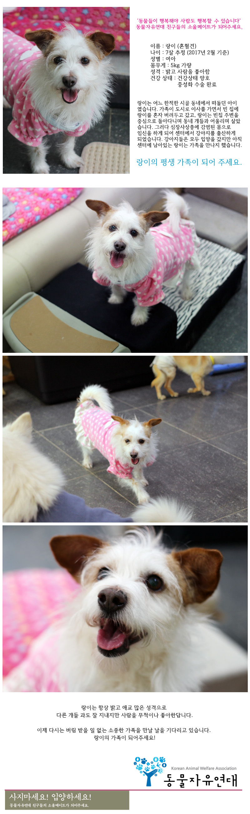 너무 이쁘네요 랑이를보니 맘이 짠하네요 얼른 좋은가족만났으면 좋겠네요