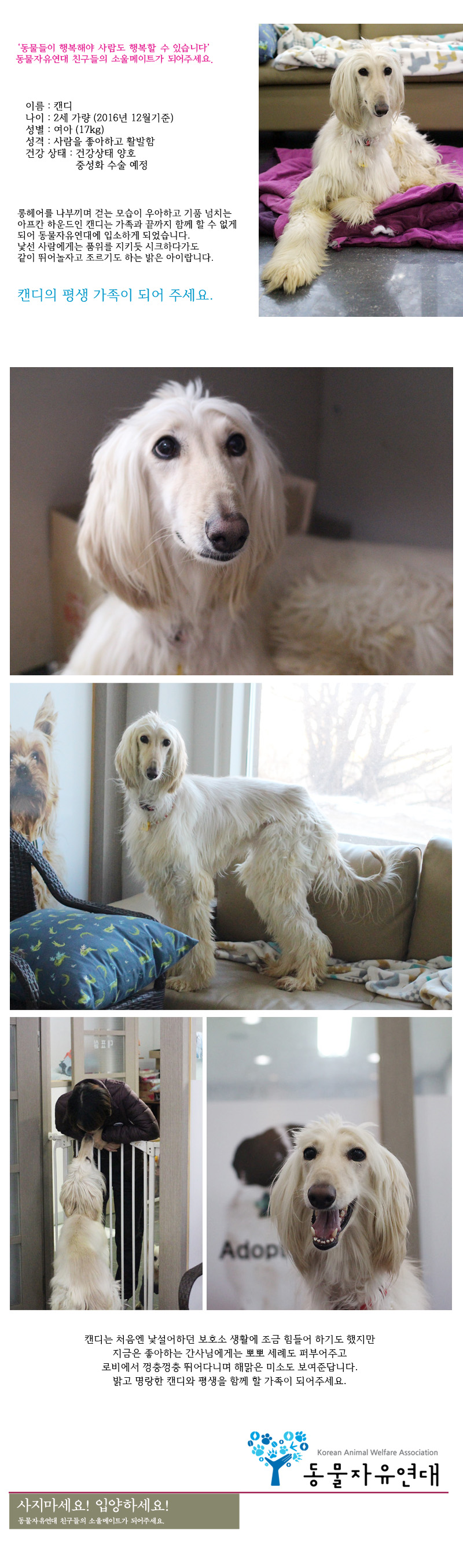 아프칸하운드 한마리키우고있어서 캔디 입양해서 가족이되고싶은데 입양진행중이라 아쉽네요~