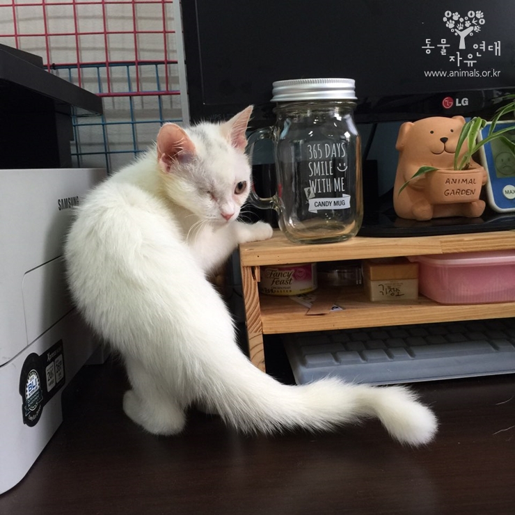 기타 건강상태 : 안구적출, 경미한 귀염증, 중성화수술 예정