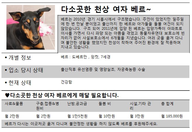 입양 후기란에서 베르가 생활하는 모습을 만나실 수 있으세요.