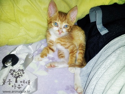 어제 인천으로 잘 입양 하였습니다. 입양 해 주신 분들께 감사 드립니다. 여건만 된다면 제가 키우고 싶었는데... 하지만 출근한 동안 종일 혼자 있는 것이 불쌍했는데.. 다른 냥이들하고 같이 살게 되서 다행이라는 생각이 들어요.. 잘 살길 바랍니다.^^