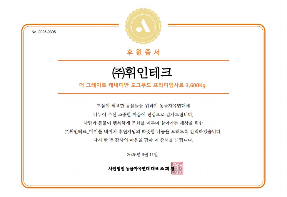 동물자유연대에 후원해주셔서 감사드립니다.