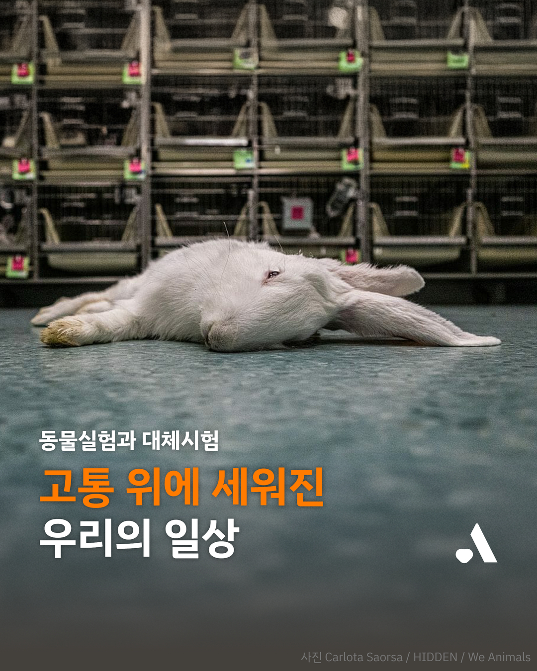 오늘도 우리의 평화로운 일상 뒤에는 고통을 겪는 수많은 동물이 있습니다. 오랫동안 과학의 이름으로 이어져 온 동물실험. 하지만 이제는 동물 없이 더 정확하고 안전한 길이 있습니다. 과학의 진보가 더 이상 동물의 희생이 아닌, 다른 생명을 향한 존중 위에서 이어지길 바랍니다.