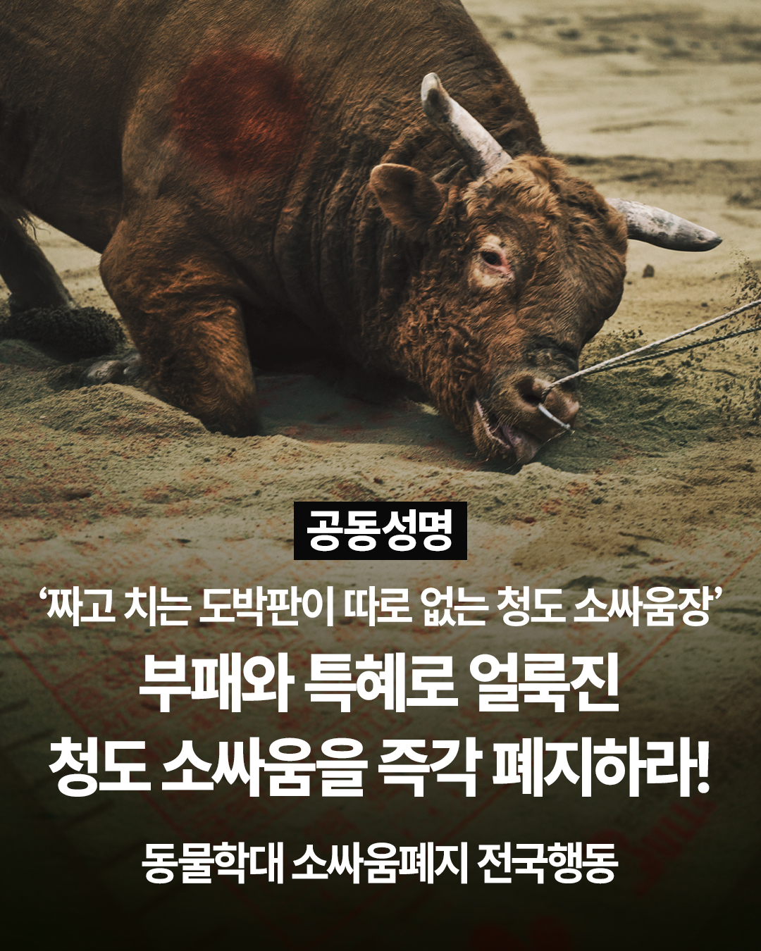 [공동성명] 부패와 특혜로 얼룩진 청도 소싸움을 즉각 폐지하라!