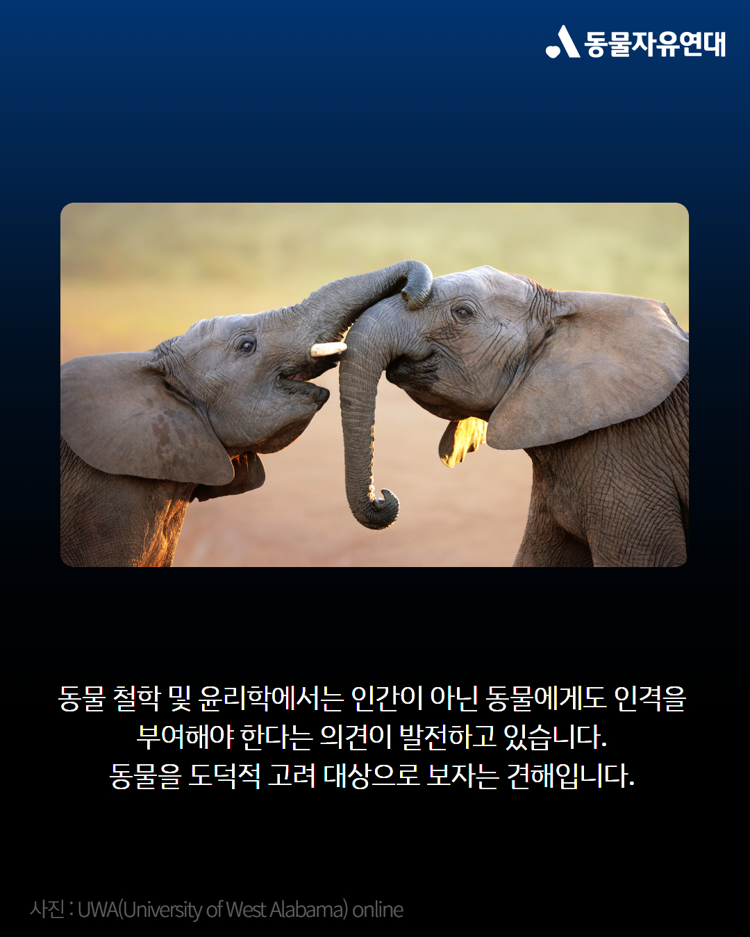 우리와 다르지만, 동물 역시 삶에 대한 욕구와 자기 방식의 삶을 가진 존재들입니다. 비인간인격체를 포함해 동물들을 도덕적 고려의 대상으로 인정하고, 동물을 둘러싼 법과 제도의 변화를 만들어가야 합니다.