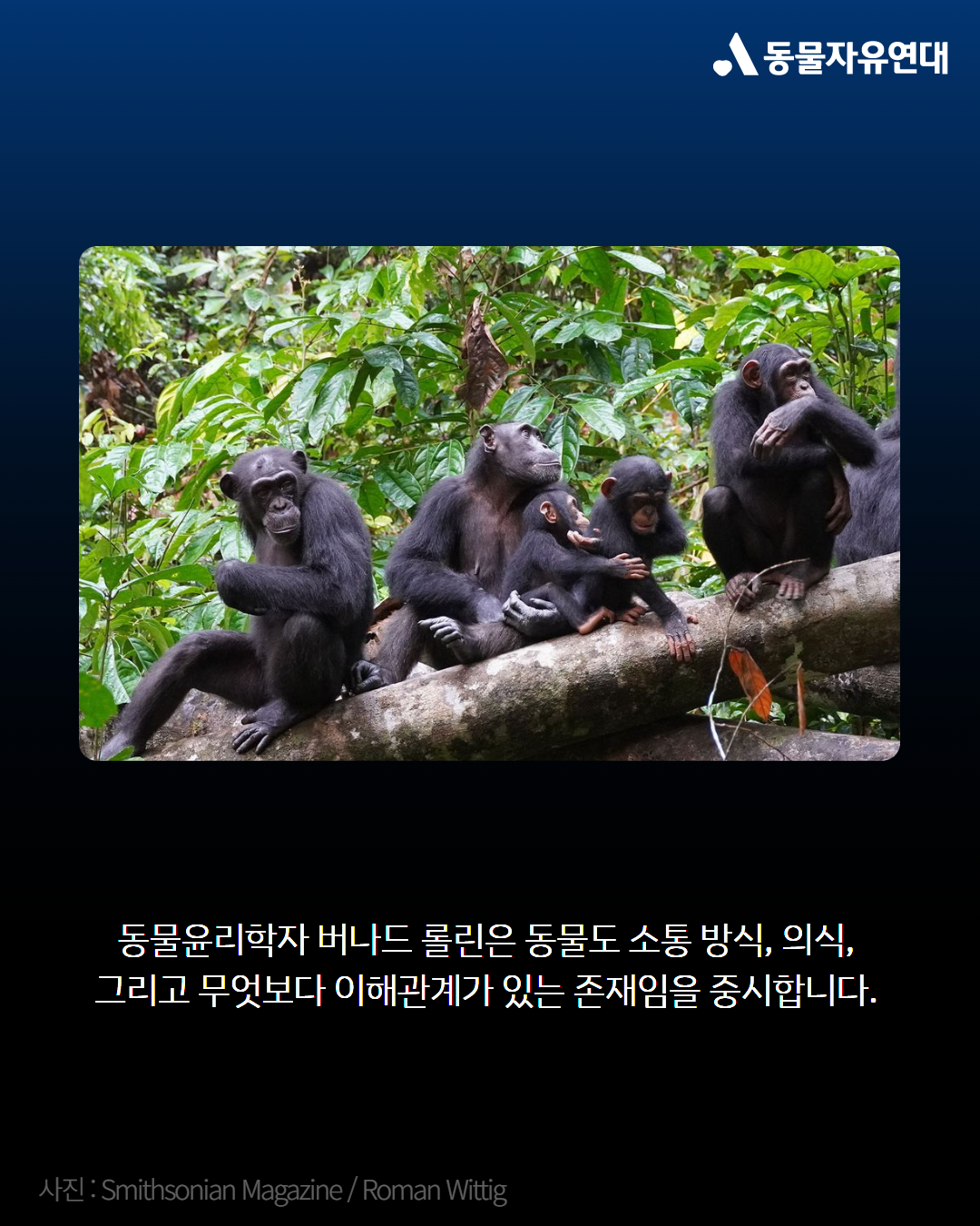 동물 철학 및 윤리학에서는 인간이 아닌 동물에게도 인격을 부여해야 한다는 의견이 점점 형성되고 있습니다. 동물을 도덕적 고려 대상으로 보자는 견해를 가졌던 버나드 롤린의 주장을 소개합니다.