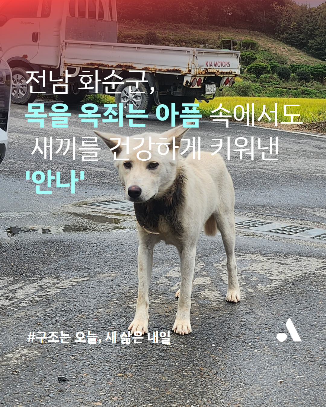 기온이 점차 떨어지던 2025년 11월, 동물자유연대 활동가들은 오랜 시간 목줄이 목을 파고드는 상태로 돌아다니고 있다는 개를 구조하기 위해 전라남도 화순으로 향했습니다.