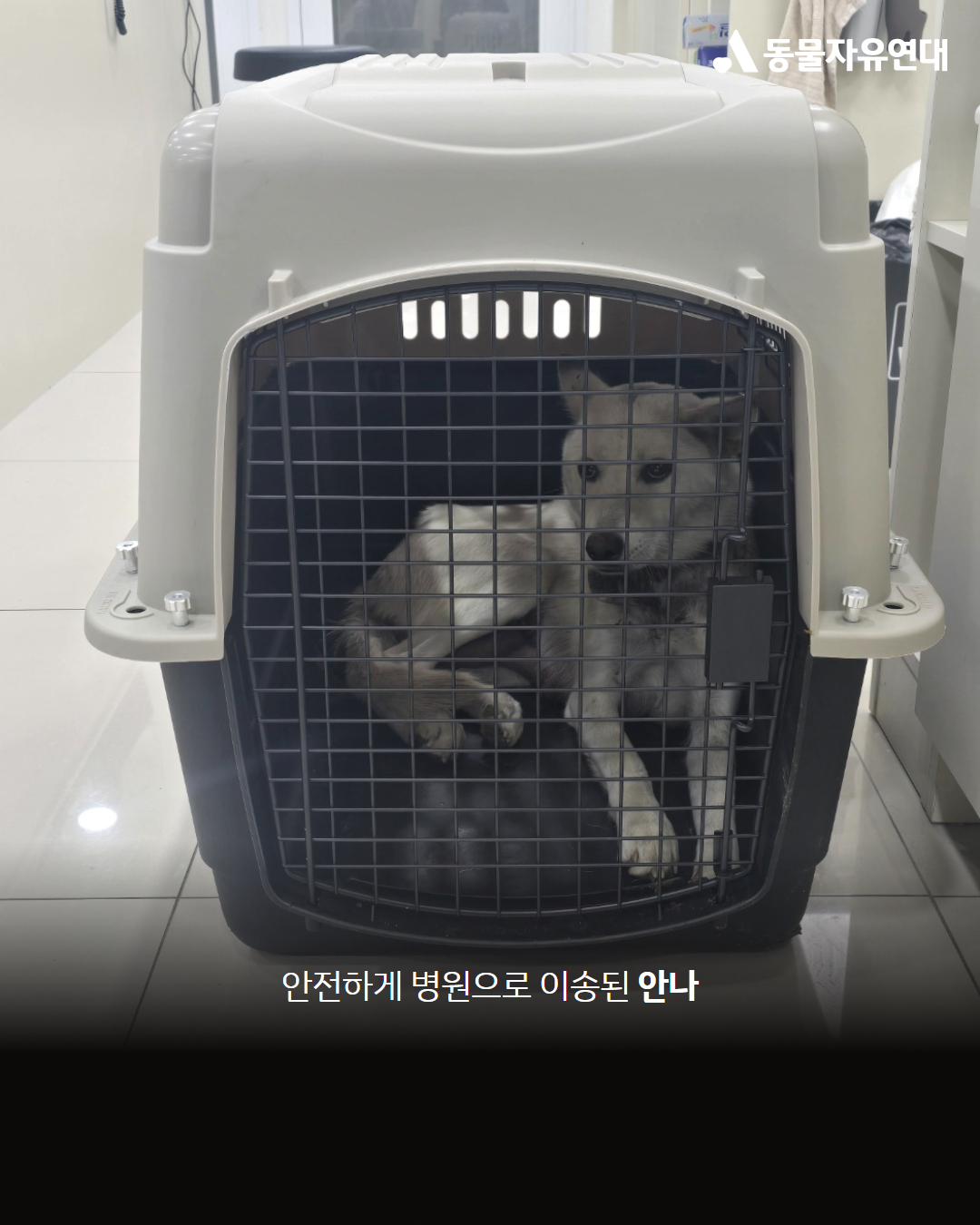 어미 견은 곧바로 병원으로 이송되어 ‘안나’라는 이름을 가지고 치료받고 있으며, 목 외상 부분이 거의 다 아물어 곧 퇴원할 예정입니다.