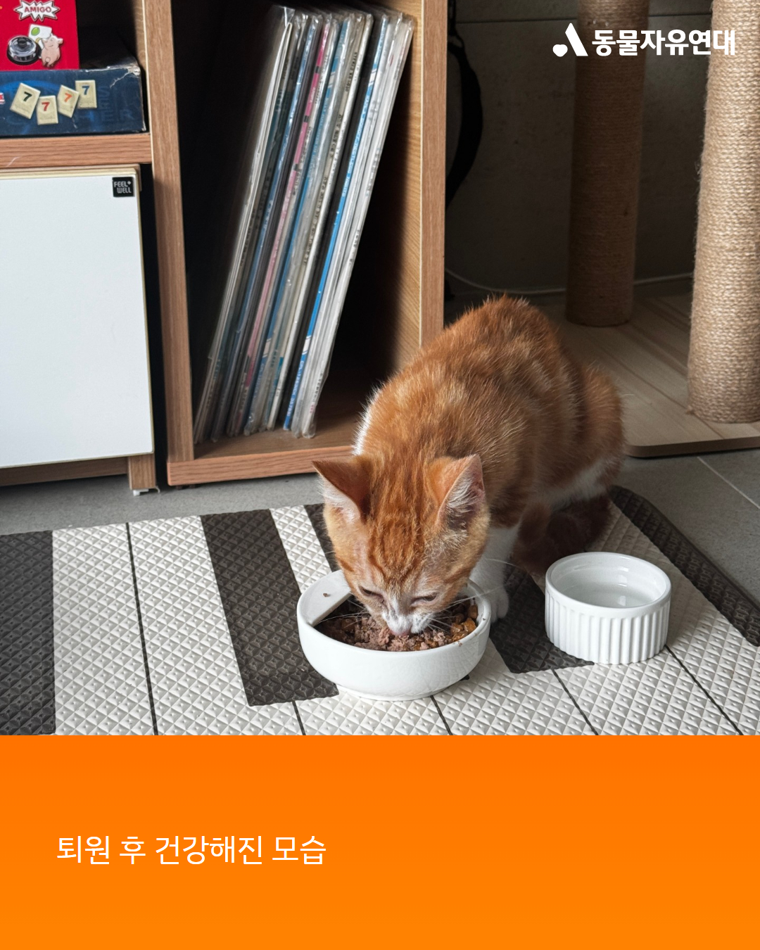 퇴원하면 구조자는 대선이를 좋은 곳으로 입양 보낼 때까지 보호하고 싶었지만 집에는 예민한 노묘 세 마리가 있어서 쉽지 않은 일이었습니다. 그래서 결혼한 딸에게 부탁했습니다. 너무 예쁘고 성격도 좋으니 입양 보낼 때까지 데리고 있어달라고. 딸은 흔쾌히 알겠다고 했습니다. 딸은 대선이 오기 전에 캣타워도 구매하고 대선이를 위해 이것저것 마련했습니다. 대선이는 딸 가족을 잘 따라 주어서 잘 지냈습니다.