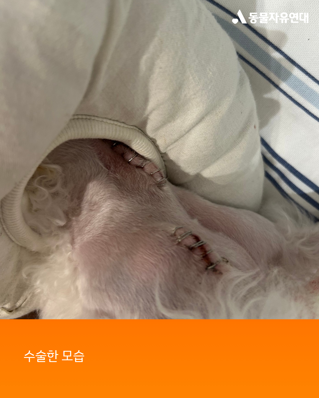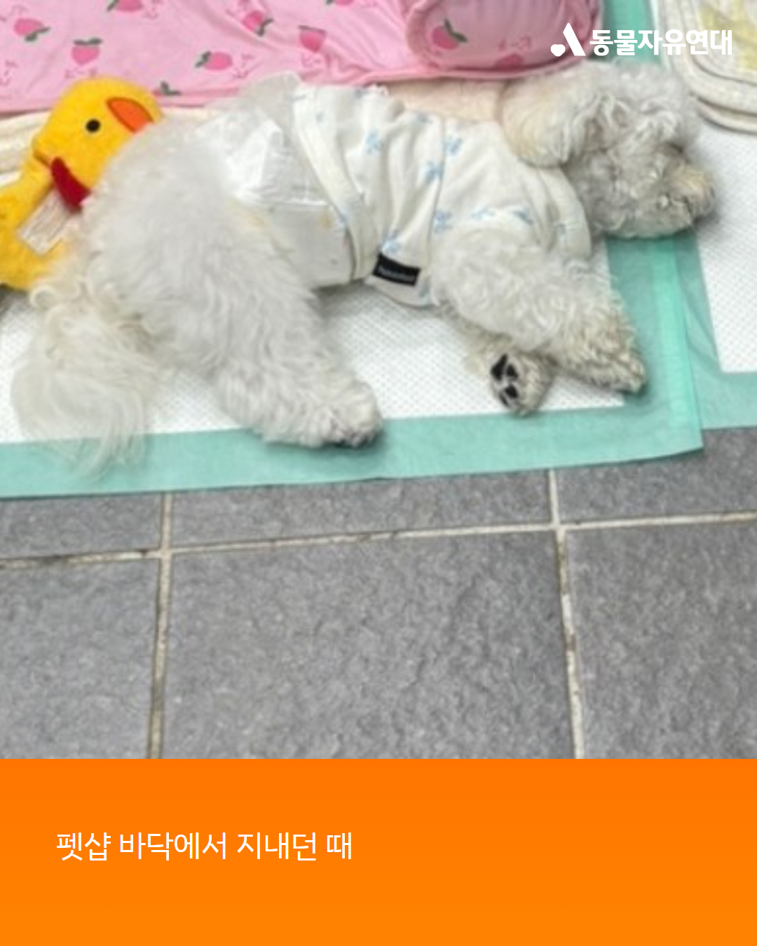 ‘치운다’는 것이 무슨 뜻인지... 아이는 그렇게 약 두 달 동안 펫샵 바닥에서 생활하며 밤이면 불 꺼진 곳에 남아있었습니다. 지인이 아이가 안쓰러워 매트를 사서 깔아준 게 전부였고 하반신 마비가 온 상태에서 걸으려고 애를 쓰다 보니 미끄러운 바닥에서 슬개골이 탈골되었고 피부병이 생겨 발가락과 다리를 물어뜯어 피가 나고, 몸에서 벌레가 나왔습니다.