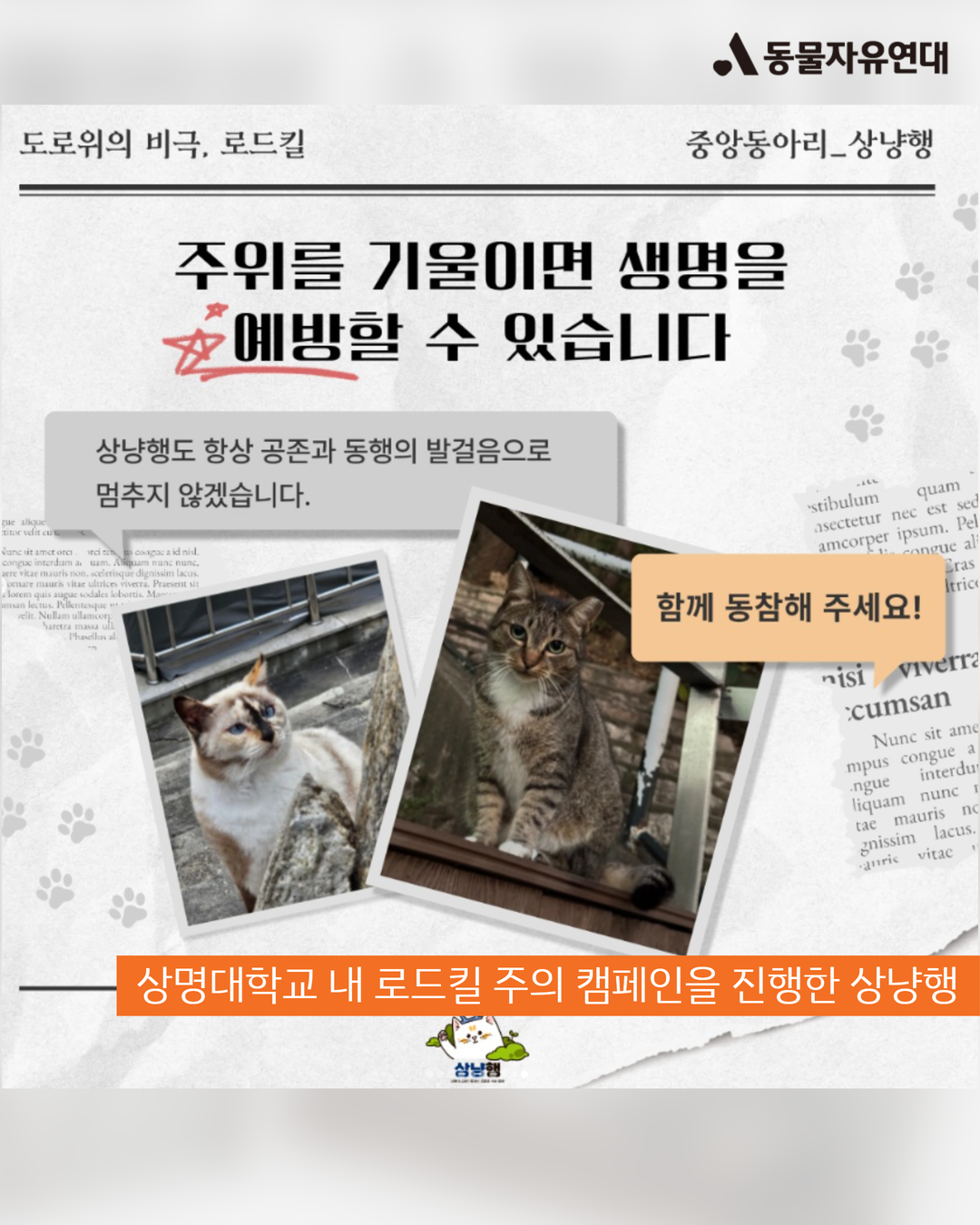 캠퍼스 내 로드킬 사고를 예방하기 위해 ‘로드킬 주의 캠페인’을 진행했습니다.