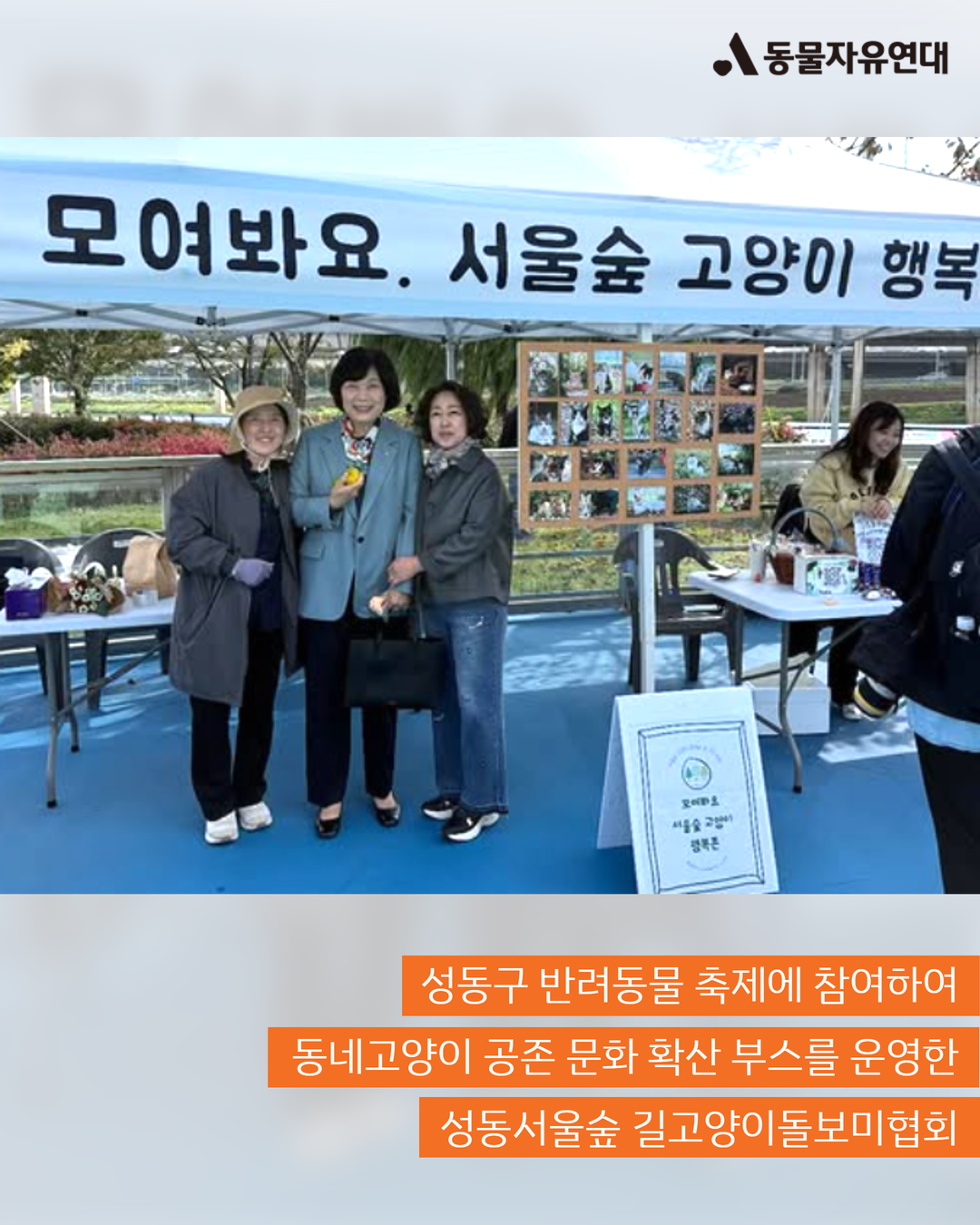 성동구 반려동물 축제에 참여해 ‘동네고양이 공존 문화 확산 부스’를 운영했습니다.